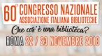 60. Congresso nazionale AIB: Che cos’è una biblioteca? L'Associazione italiana Biblioteche terrà a Roma, alla Biblioteca Nazionale centrale, le due giornate del 22 e 23 novembre 2018 per l'incontro annuale programmatico al quale interverrà il Dg - Paola Passarelli