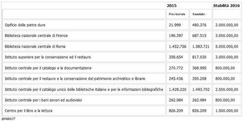 Sono commenti positivi quelli del ministro dei beni e delle attività culturali e del turismo Dario Franceschini che accoglie così le misure per la cultura e il turismo contenute nell'approvazione della Legge di stabilità 2016 da parte del Parlamento. Dopo molto tempo torna sopra i 2 miliardi il bilancio riferito al Mibact ed include importanti novità: + 30 milioni di euro ogni anno per Archivi, Biblioteche e Istituti del Ministero che dopo anni di sacrifici e tagli, finalmente ricevono nuovi fondi per il funzionamento – con ingente aumento delle risorse delle rispettive direzioni generali - e per gli Istituti del Ministero. Inoltre, aumenta di 1 milione e 700 mila euro la dotazione complessiva di 4 istituti del Mibact: l’Archivio centrale dello Stato, l’Istituto centrale per la Grafica, l’Istituto centrale per gli Archivi e l’Istituto Centrale per la demoetnoantropologia. Inoltre + 16 milioni annui per i contributi agli Istituti culturali: raddoppiano infatti le risorse per enti istituti e associazioni e fondazioni del mondo della cultura, in particolare 1 milione in più è assegnato all’Accademia della Crusca e all’Accademia dei Lincei.